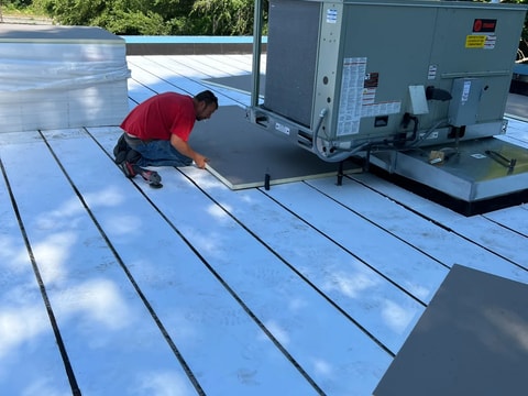 Universal Foam Products supplied 1 lb Virgin EPS Foam Flute Fillers measuring 2 inches x 15.5 inches x 96 inches for a commercial roofing project in Chicopee, MA.