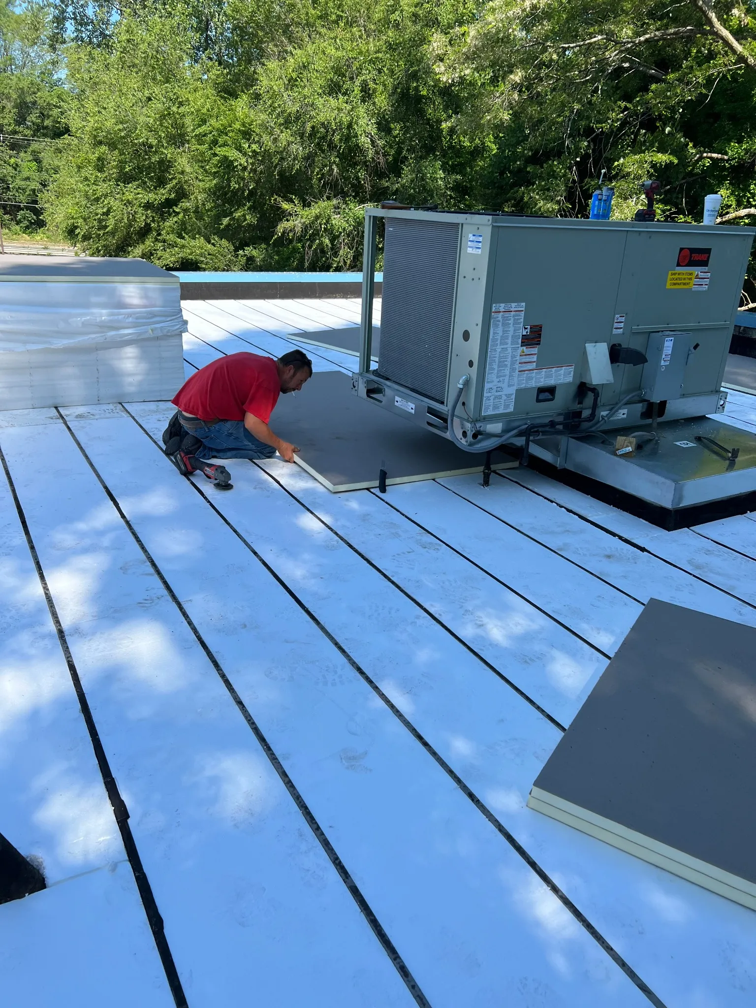 Universal Foam Products supplied 1 lb Virgin EPS Foam Flute Fillers measuring 2" x 15.5" x 96" for a commercial roofing project in Chicopee, MA. The EPS flute fillers were installed as a stable base layer, then topped with 1” ISO insulation and finished with 60 mil TPO roofing membrane.